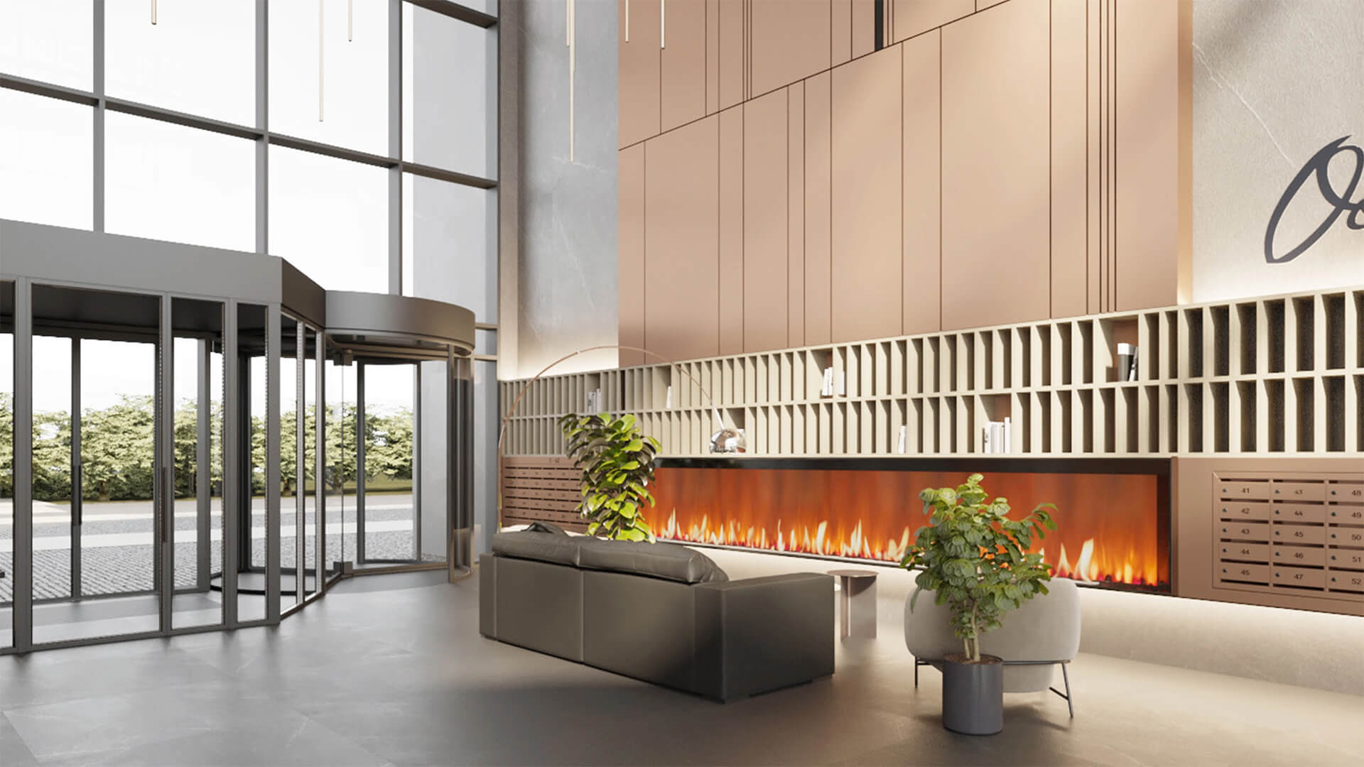 Жилой комплекс «Обручева 30» встречает жителей премиальным лобби, спроектированным студией KAMEN Architects. Интерьер лобби сочетает в себе элегантный серый камень с элементами бронзы и умным освещением, создавая атмосферу уюта и стиля.
