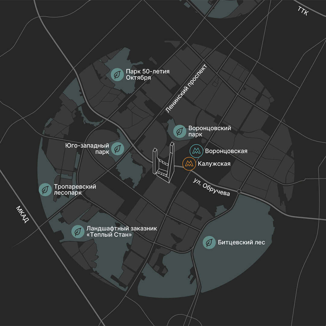 Жилой комплекс «Обручева 30» расположен в одном из самых престижных районов Москвы — ЮЗАО. Его окружение сочетает в себе современность и историческую атмосферу, создавая уникальную среду для жизни. Резиденты комплекса живут среди успешных, образованных людей, разделяющих общие ценности и стремления к высокому качеству жизни.